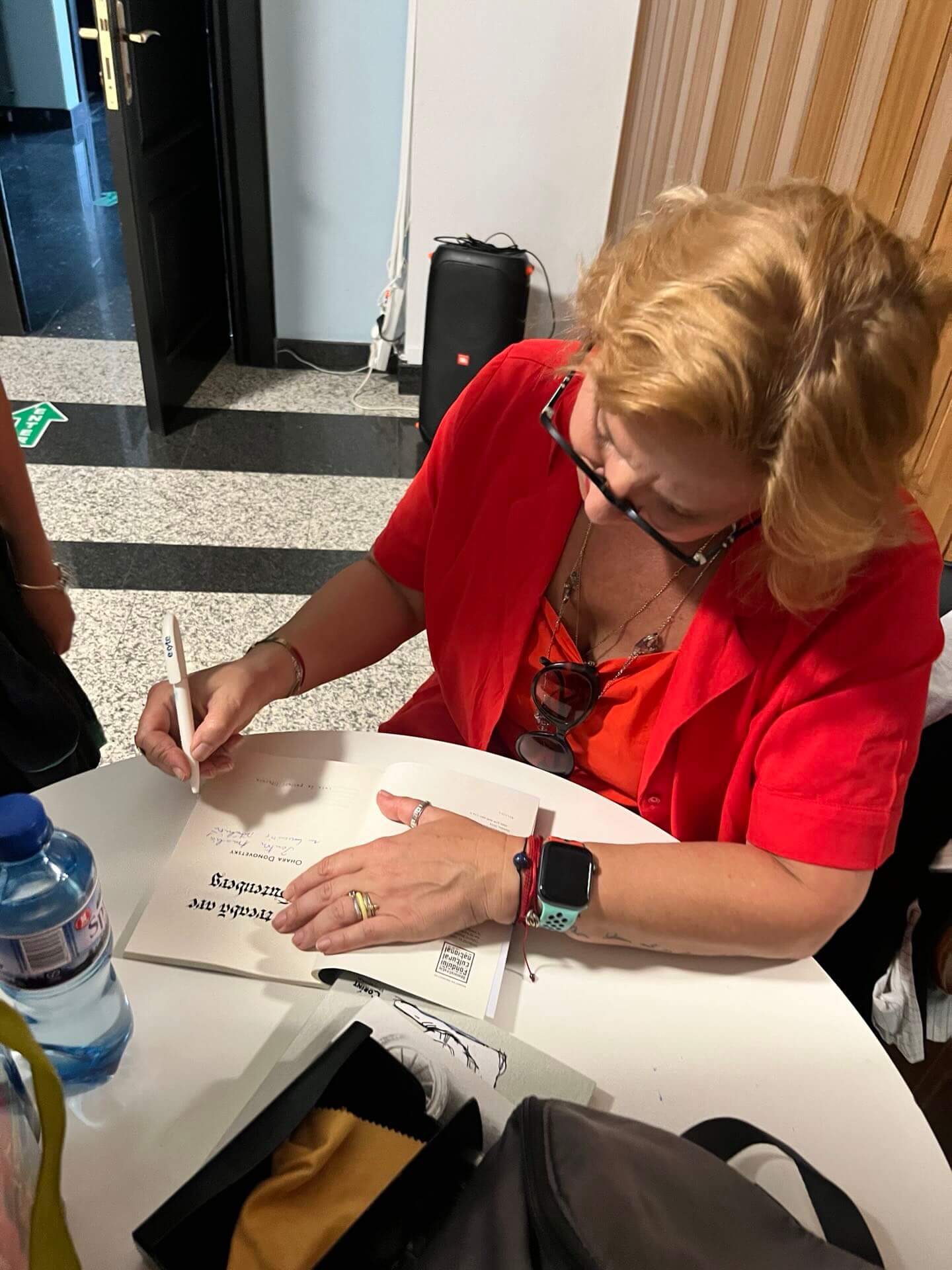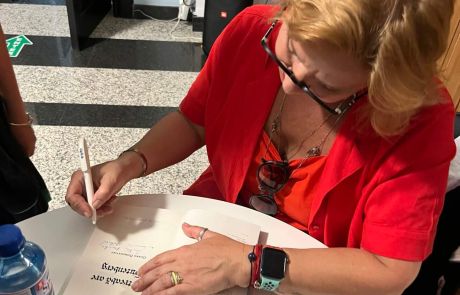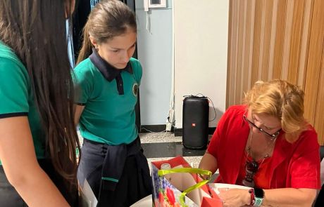 La final, invitata a oferit elevilor exemplare cu autograf din cea mai recentă carte de versuri lansată: “Ce treabă are Gutenberg”.